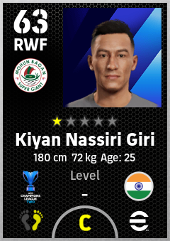 . Kiyan Nassiri Giri is a Right Wing Forward footballer from India who plays for Mohun Bagan Super Giant in eFootball 2026.
