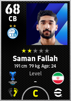 . Saman Fallah is a Center Back footballer from Ir Iran who plays for Esteghlal Fc in eFootball 2026.