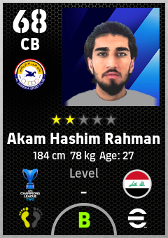 . Akam Hashim Rahman is a Center Back footballer from Iraq who plays for Al Zawraa Sc in eFootball 2026.