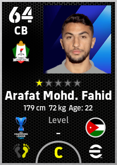 . Arafat Mohd. Fahid is a Center Back footballer from Jordan who plays for Al Wehdat Sc in eFootball 2026.