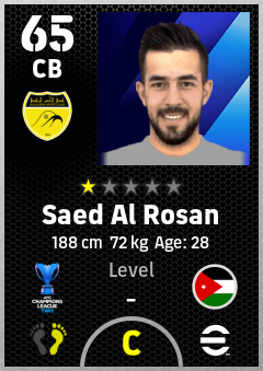 . Saed Al Rosan is a Center Back footballer from Jordan who plays for Al Hussein Sc in eFootball 2026.