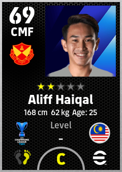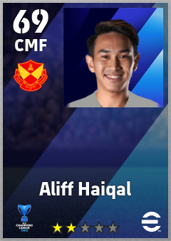 . Aliff Haiqal is a Center Midfielder footballer from Malaysia who plays for Selangor Fc in eFootball 2026.