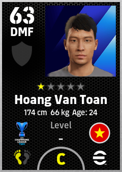 . Hoang Van Toan is a Defensive Midfielder footballer from Vietnam who plays for Cong An Hanoi Fc in eFootball 2026.