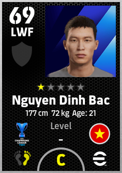 . Nguyen Dinh Bac is a Left Wing Forward footballer from Vietnam who plays for Cong An Hanoi Fc in eFootball 2026.