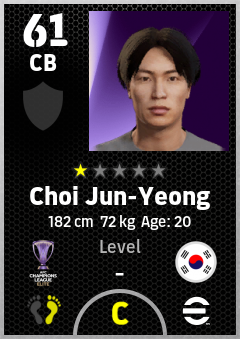 . Choi Jun-Yeong is a Center Back footballer from Korea Republic who plays for Fc Seoul in eFootball 2026.