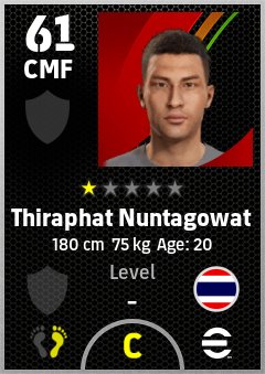 . Thiraphat Nuntagowat is a Center Midfielder footballer from Thailand who plays for Free in eFootball 2026.