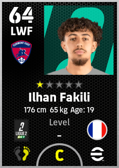 . Ilhan Fakili is a Left Wing Forward footballer from France who plays for Clermont Foot 63 in eFootball 2026.