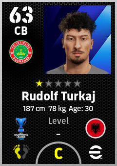 . Rudolf Turkaj is a Center Back footballer from Albania who plays for Fc Istiklol Dushanbe in eFootball 2026.