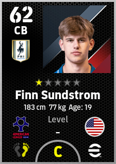 . Finn Sundstrom is a Center Back footballer from United States who plays for Philadelphia By in eFootball 2026.