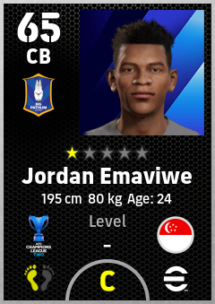 . Jordan Emaviwe is a Center Back footballer from Singapore who plays for Bg Pathum United Fc in eFootball 2026.