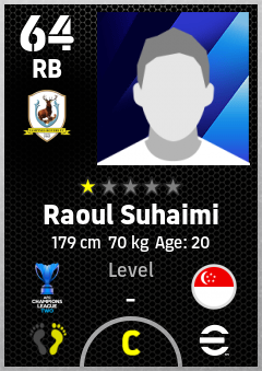 . Raoul Suhaimi is a Right Back footballer from Singapore who plays for Tampines Rovers Fc in eFootball 2026.
