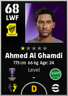 . Ahmed Al Ghamdi is a Left Wing Forward footballer from Saudi Arabia who plays for Al Ittihad Club in eFootball 2026.