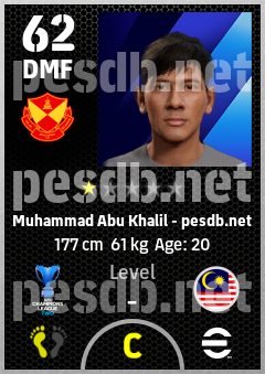 . Muhammad Abu Khalil is a Defensive Midfielder footballer from Malaysia who plays for Selangor Fc in eFootball 2026.