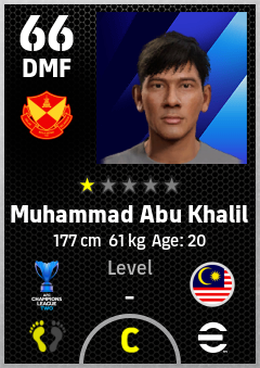 . Muhammad Abu Khalil is a Defensive Midfielder footballer from Malaysia who plays for Selangor Fc in eFootball 2026.