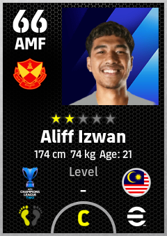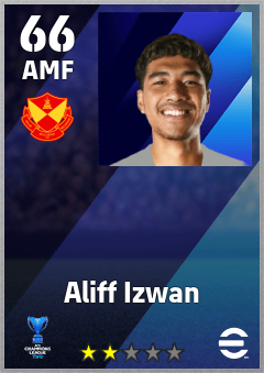 . Aliff Izwan is a Attacking Midfielder footballer from Malaysia who plays for Selangor Fc in eFootball 2026.