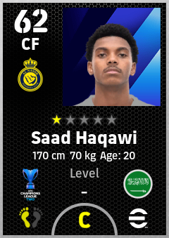 . Saad Haqawi is a Center Forward footballer from Saudi Arabia who plays for Al Nassr Fc in eFootball 2026.