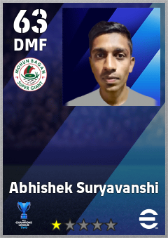 . Abhishek Suryavanshi is a Defensive Midfielder footballer from India who plays for Mohun Bagan Super Giant in eFootball 2026.