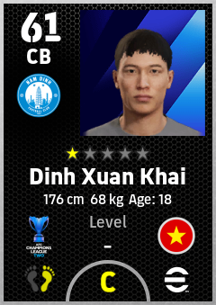 . Dinh Xuan Khai is a Center Back footballer from Vietnam who plays for Nam Dinh Fc in eFootball 2026.
