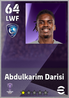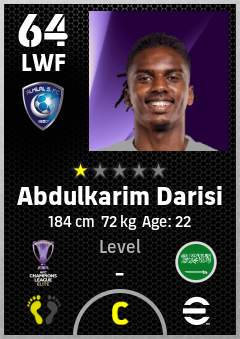 . Abdulkarim Darisi is a Left Wing Forward footballer from Saudi Arabia who plays for Al Hilal Sfc in eFootball 2026.