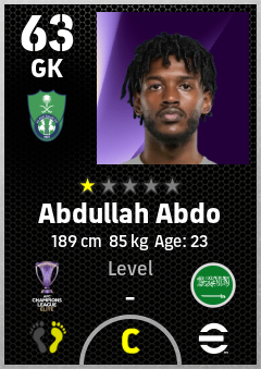 . Abdullah Abdo is a Goalkeeper footballer from Saudi Arabia who plays for Al Ahli Saudi Fc in eFootball 2026.