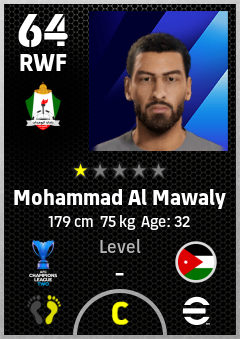 . Mohammad Al Mawaly is a Right Wing Forward footballer from Jordan who plays for Al Wehdat Sc in eFootball 2026.