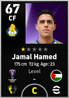 . Jamal Hamed is a Center Forward footballer from Palestine who plays for Al Gharafa Sc in eFootball 2026.