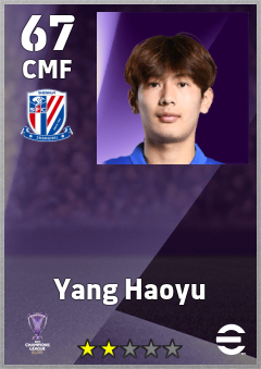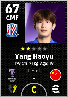 . Yang Haoyu is a Center Midfielder footballer from China Pr who plays for Shanghai Shenhua Fc in eFootball 2026.