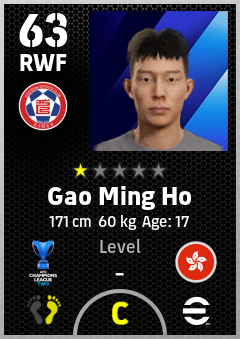 . Gao Ming Ho is a Right Wing Forward footballer from Hong Kong, China who plays for Eastern Sc in eFootball 2026.