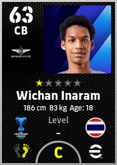 . Wichan Inaram is a Center Back footballer from Thailand who plays for True Bangkok United Fc in eFootball 2026.