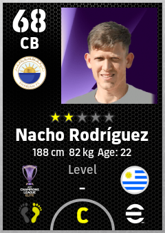 . Nacho Rodríguez is a Center Back footballer from Uruguay who plays for Sharjah Fc in eFootball 2026.