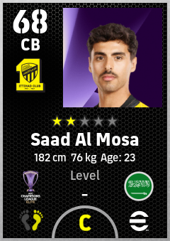 . Saad Al Mosa is a Center Back footballer from Saudi Arabia who plays for Al Ittihad Club in eFootball 2026.