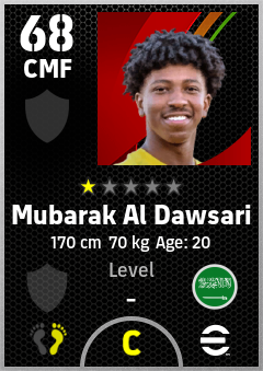 . Mubarak Al Dawsari is a Center Midfielder footballer from Saudi Arabia who plays for Free in eFootball 2026.