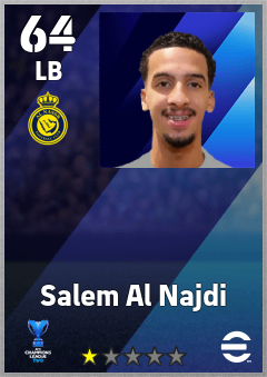. Salem Al Najdi is a Left Back footballer from Saudi Arabia who plays for Al Nassr Fc in eFootball 2026.