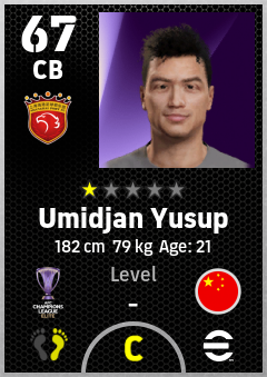 . Umidjan Yusup is a Center Back footballer from China Pr who plays for Shanghai Port Fc in eFootball 2026.
