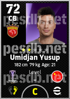 . Umidjan Yusup is a Center Back footballer from China Pr who plays for Shanghai Port Fc in eFootball 2026.