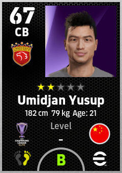 . Umidjan Yusup is a Center Back footballer from China Pr who plays for Shanghai Port Fc in eFootball 2026.