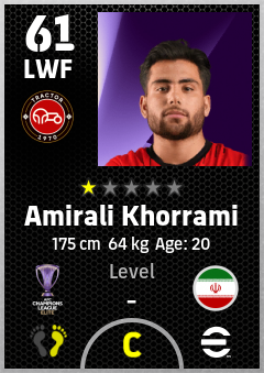 . Amirali Khorrami is a Left Wing Forward footballer from Ir Iran who plays for Tractor Fc in eFootball 2026.