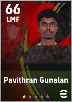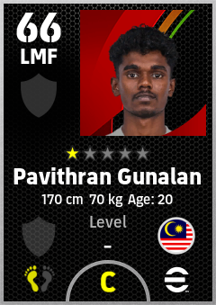 . Pavithran Gunalan is a Left Midfielder footballer from Malaysia who plays for Free in eFootball 2026.