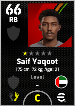 . Saif Yaqoot is a Right Back footballer from United Arab Emirates who plays for Free in eFootball 2026.