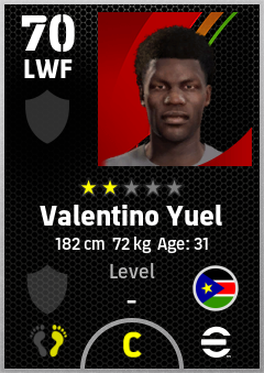 . Valentino Yuel is a Left Wing Forward footballer from South Sudan who plays for Free in eFootball 2026.