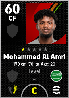 . Mohammed Al Amri is a Center Forward footballer from Saudi Arabia who plays for Free in eFootball 2026.