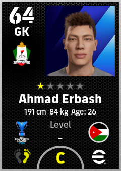 . Ahmad Erbash is a Goalkeeper footballer from Jordan who plays for Al Wehdat Sc in eFootball 2026.