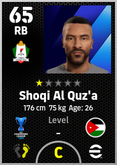 . Shoqi Al Quz'a is a Right Back footballer from Jordan who plays for Al Wehdat Sc in eFootball 2026.