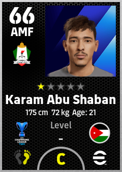 . Karam Abu Shaban is a Attacking Midfielder footballer from Jordan who plays for Al Wehdat Sc in eFootball 2026.