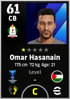 . Omar Hasanain is a Center Back footballer from Palestine who plays for Al Wehdat Sc in eFootball 2026.