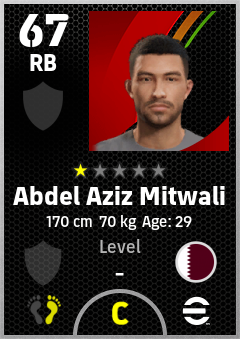 . Abdel Aziz Mitwali is a Right Back footballer from Qatar who plays for Free in eFootball 2026.