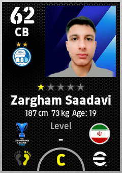 . Zargham Saadavi is a Center Back footballer from Ir Iran who plays for Esteghlal Fc in eFootball 2026.