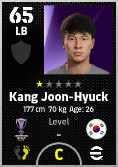 . Kang Joon-Hyuck is a Left Back footballer from Korea Republic who plays for Gangwon Fc in eFootball 2026.