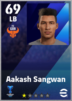 . Aakash Sangwan is a Left Back footballer from India who plays for Fc Goa in eFootball 2026.