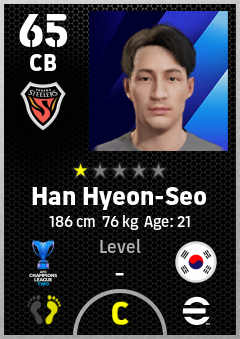 . Han Hyeon-Seo is a Center Back footballer from Korea Republic who plays for Fc Pohang Steelers in eFootball 2026.